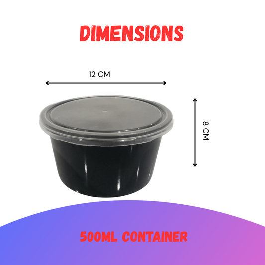 CliqBasket 20-Pack 500 GM Black Plastic Food Storage Containers – Round & Reusable