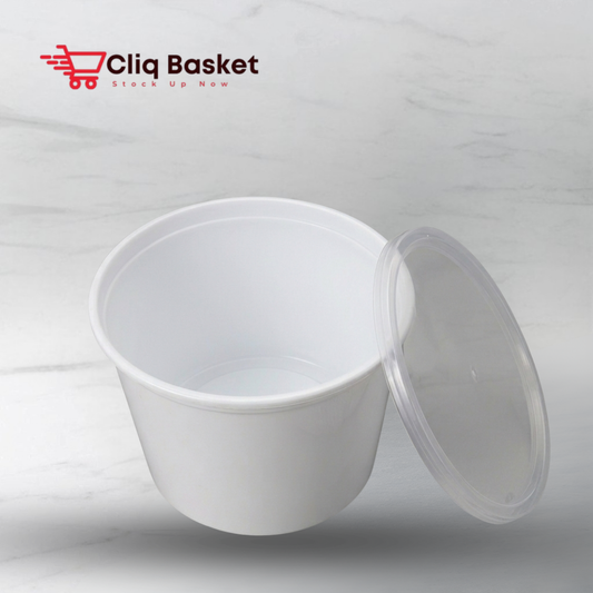 CliqBasket 1200 ml White Round Plastic Food Container – Pack of 20