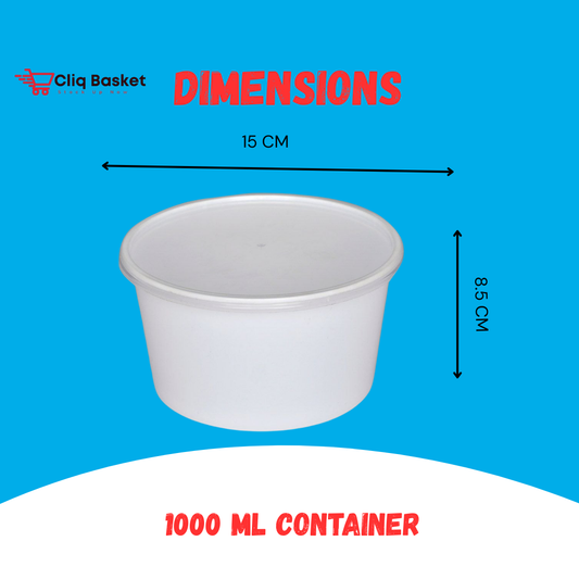 CliqBasket 1000 ML Round Plastic Food Container with Lid – Kitchen Storage Box (25 Pack)