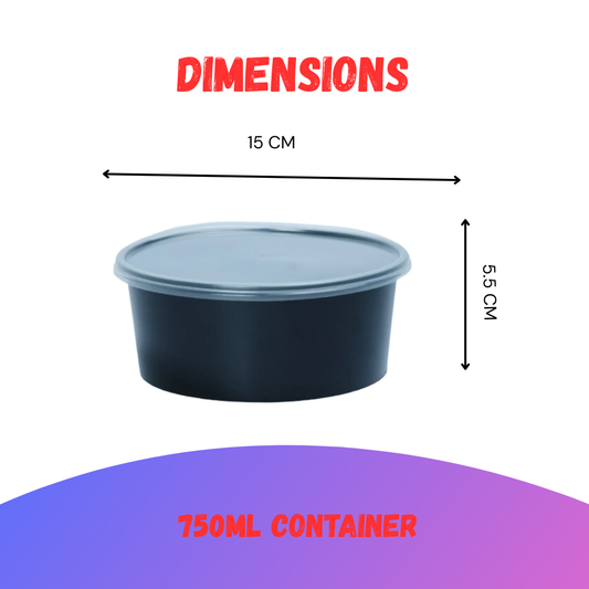 CliqBasket 750 ml Plastic Food Storage Containers with Lids | Round Reusable Containers Set of 10, Black